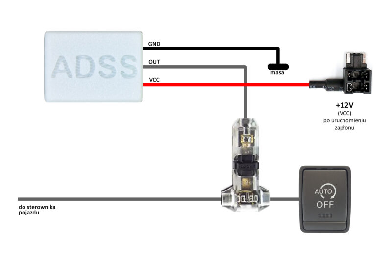 Podłączenie modułu jest bardzo proste i ogranicza się do podłączenia trzech przewodów. Nie przecinamy przy tym żadnego przewodu oryginalnej instalacji elektrycznej pojazdu. Szczegóły montażu wraz ze zdjęciami w załączonej poniżej instrukcji.