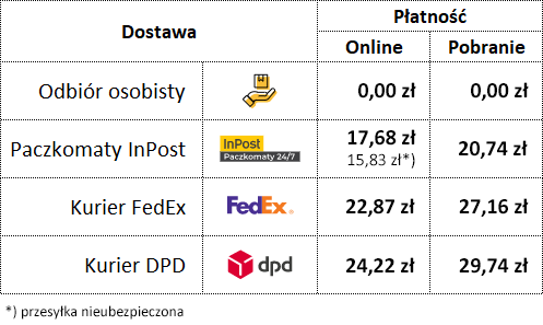 Odbiór osobisty w Zielonej Górze po wcześniejszym telefonicznym umówieniu się. Tel.: 601 47 47 46