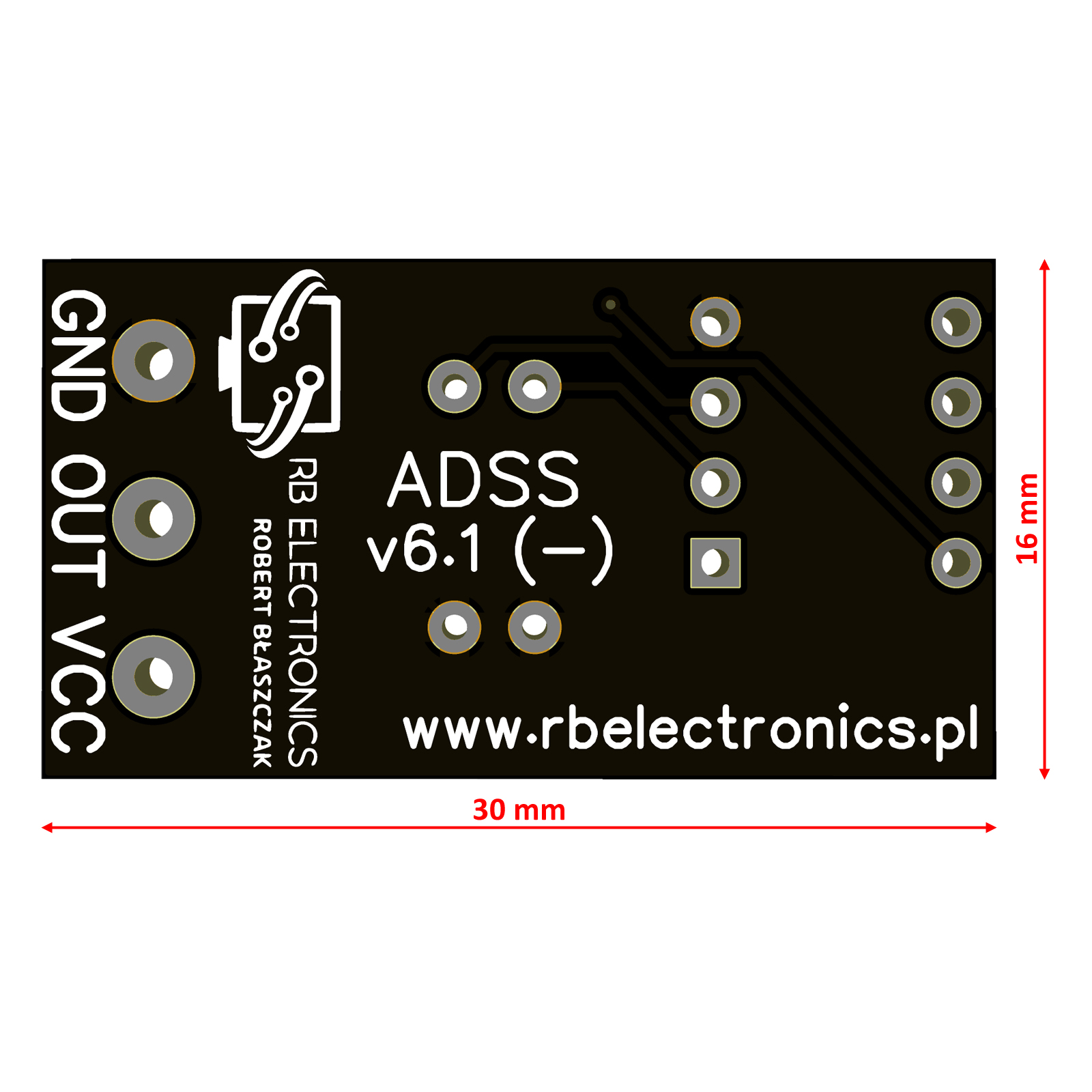 - Rozmiar: 30 mm x 16 mm x 10 mm.